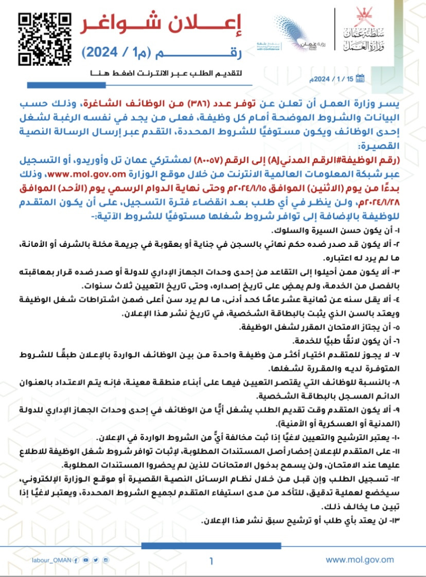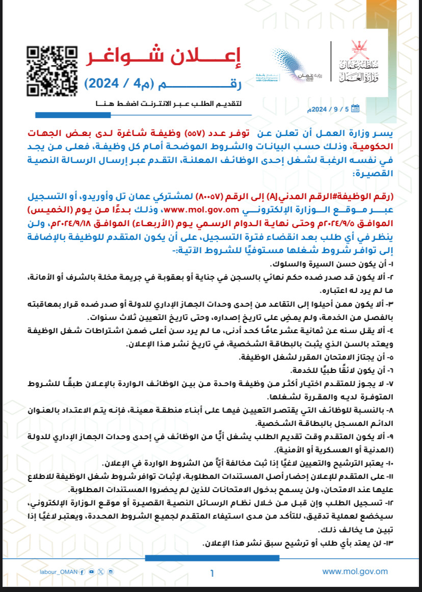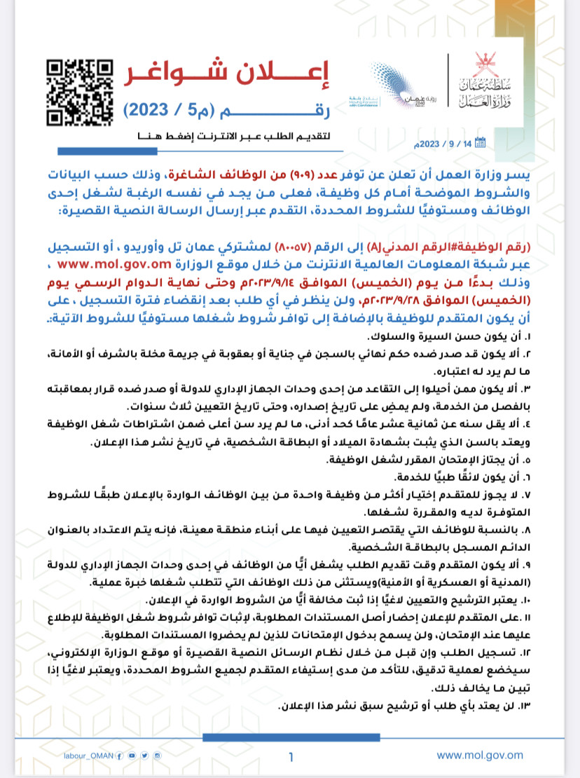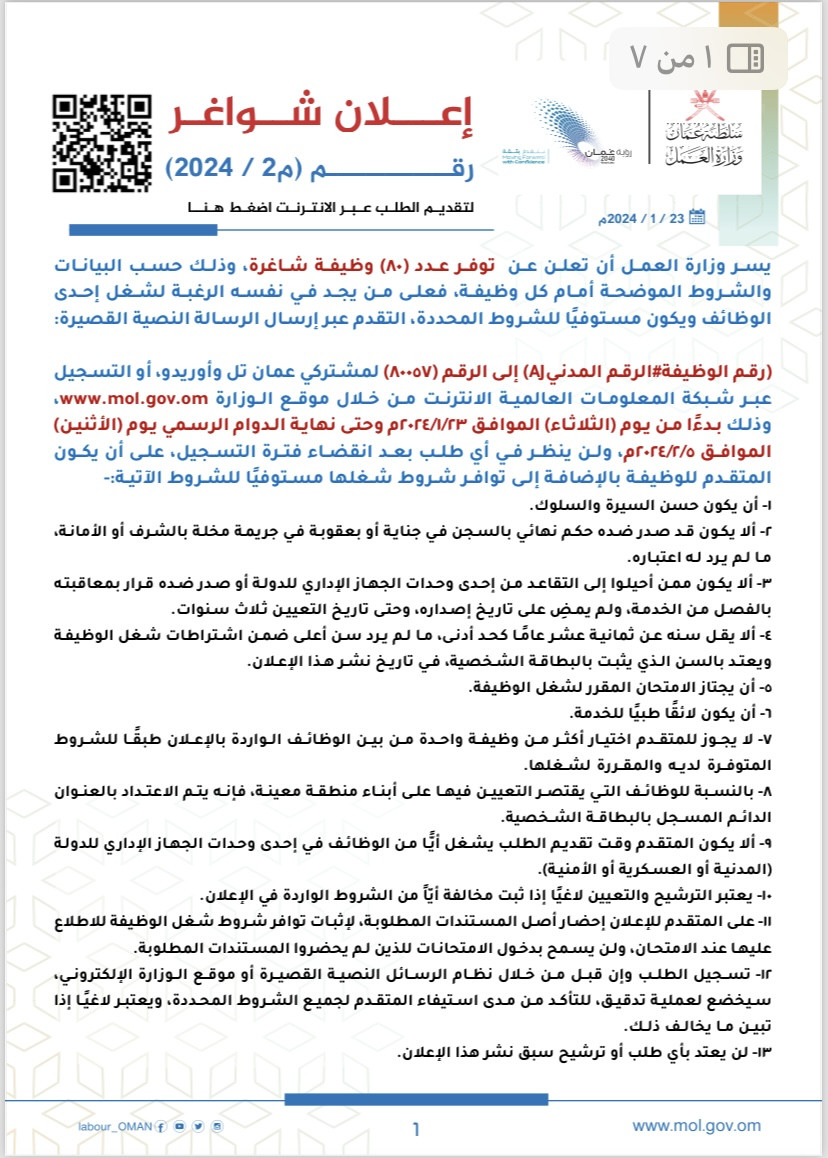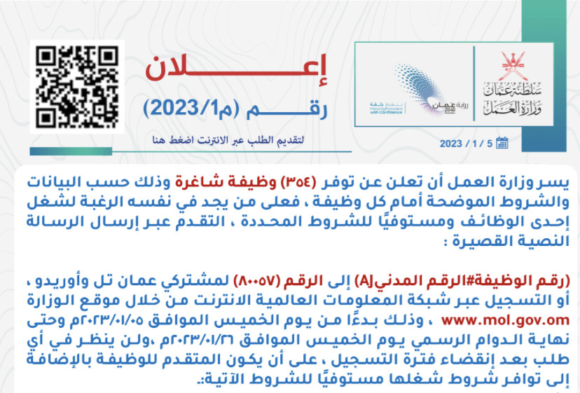 إعلان بنظام العمل الجزئي م٧ /٢٠٢٢