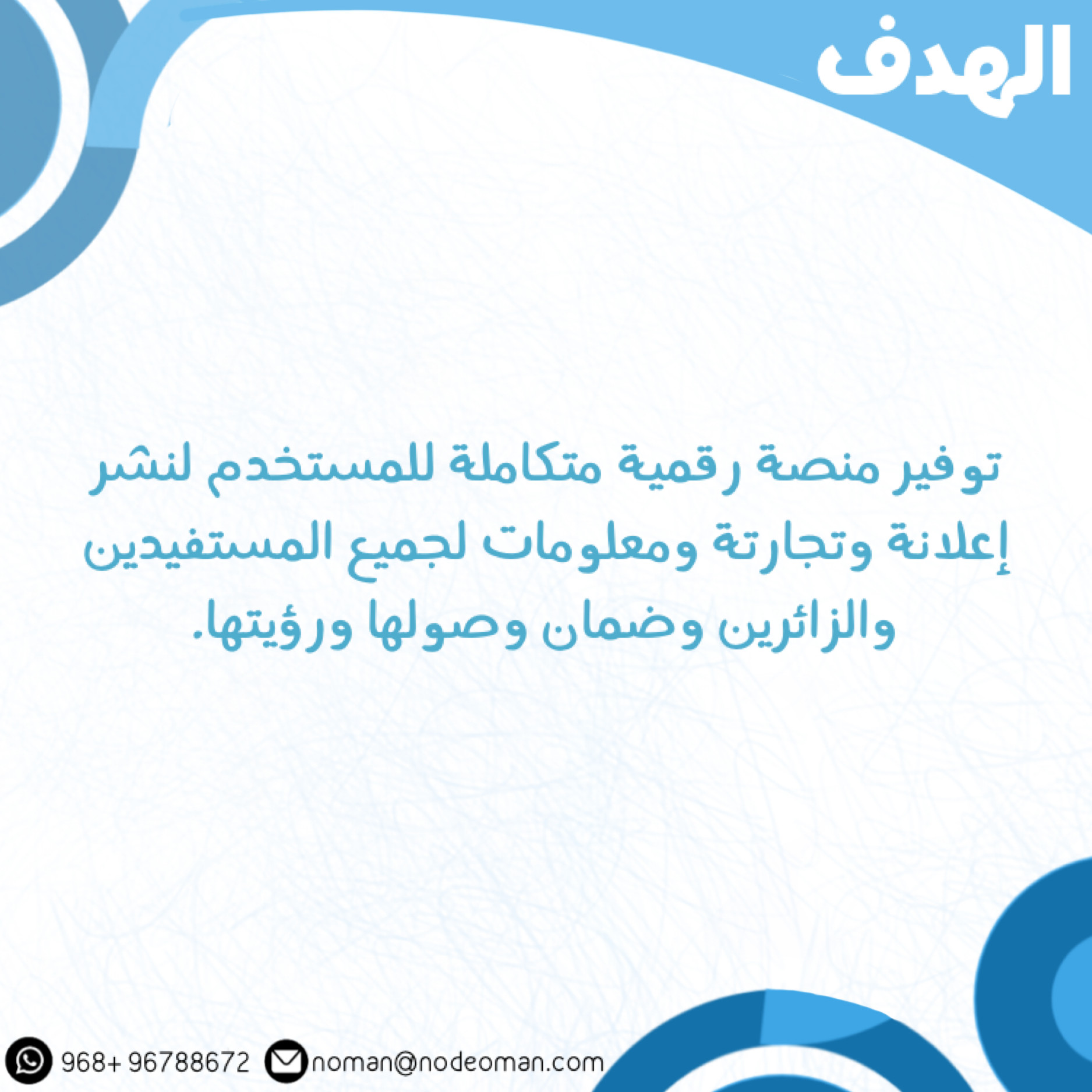 توفير منصة رقمية متكاملة للمستخدم لنشر إعلانة وتجارتة ومعلومات لجميع المستفيدين والزائرين وضمان وصولها ورؤيتها.