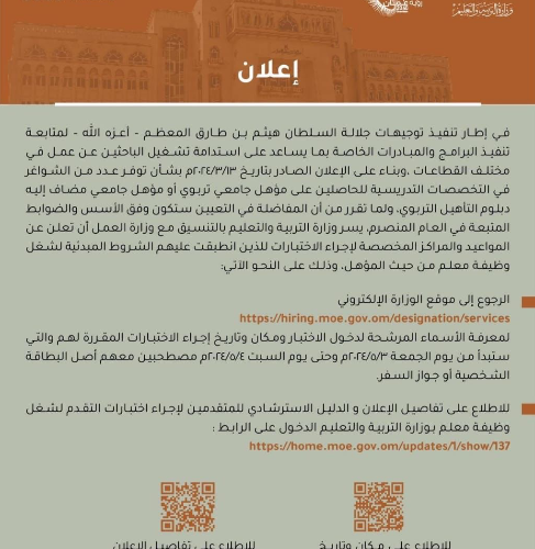 إذا كان لديك معلومات او إي شيء يتعلق عن التخصصات الجامعية التي تفيد الباحثين عن عمل . أرفقها إلينا عبر الواتساب 96788672