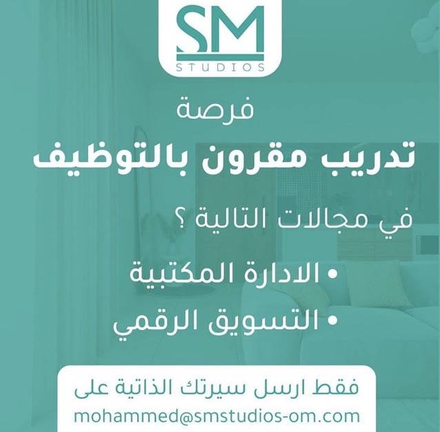 تدريب مقرونة بالتوظيف في شركة SM studios مختصة في التصميم المعماري والداخلي .