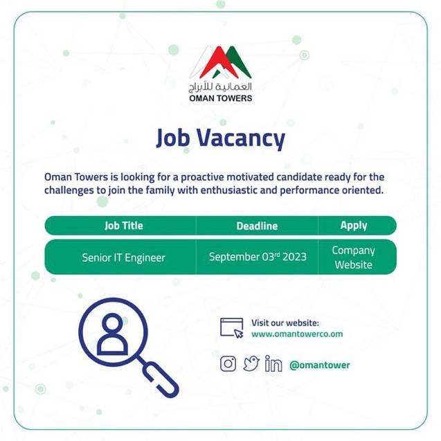 الشركة العمانية للأبراج تعلن عن توفر شاغر وظيفي لديها.