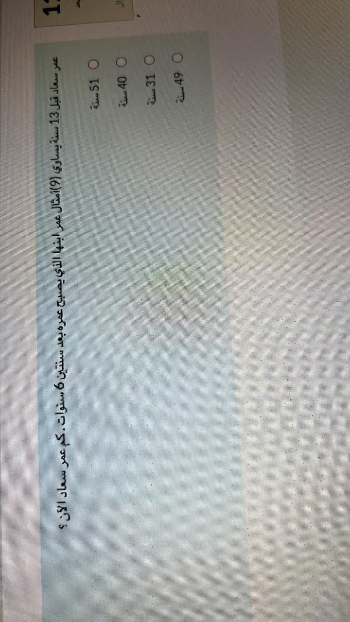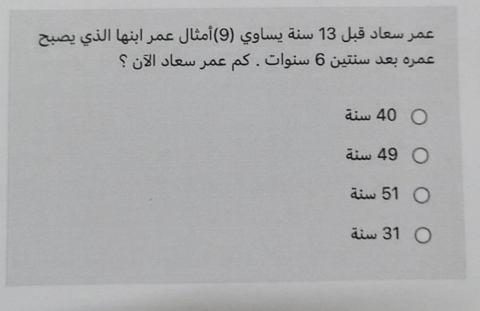 ٩ امثال عمر ابنها الذي يصبح عمره بعد سنتين ٦ سنوات،،،،